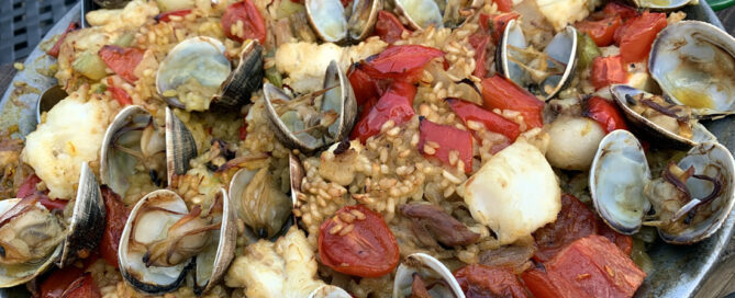 Bei meiner Lieblingspaella verwende ich gerne einen kräftigen Hühnerfond, den ich aus einem Suppenhuhn vom Bauern mit Wurzelgemüsen zubereite. Weitere Zutaten sind Kaninchen, Hühnchen, Tomaten, Zwiebeln, Venusmuscheln… Weiterlesen > Maltes Paella
